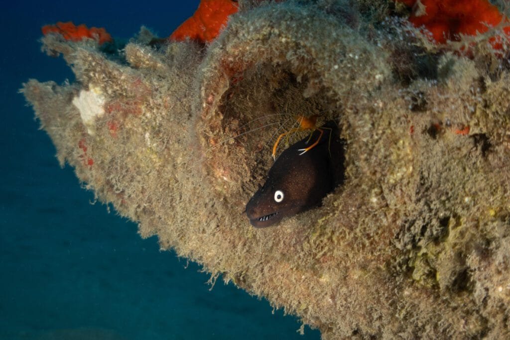 Ogni immersione regala qualcosa: formazioni vulcaniche, relitti e scogliere, squali angelo, razze, nudibranchi — e più di una sorpresa.